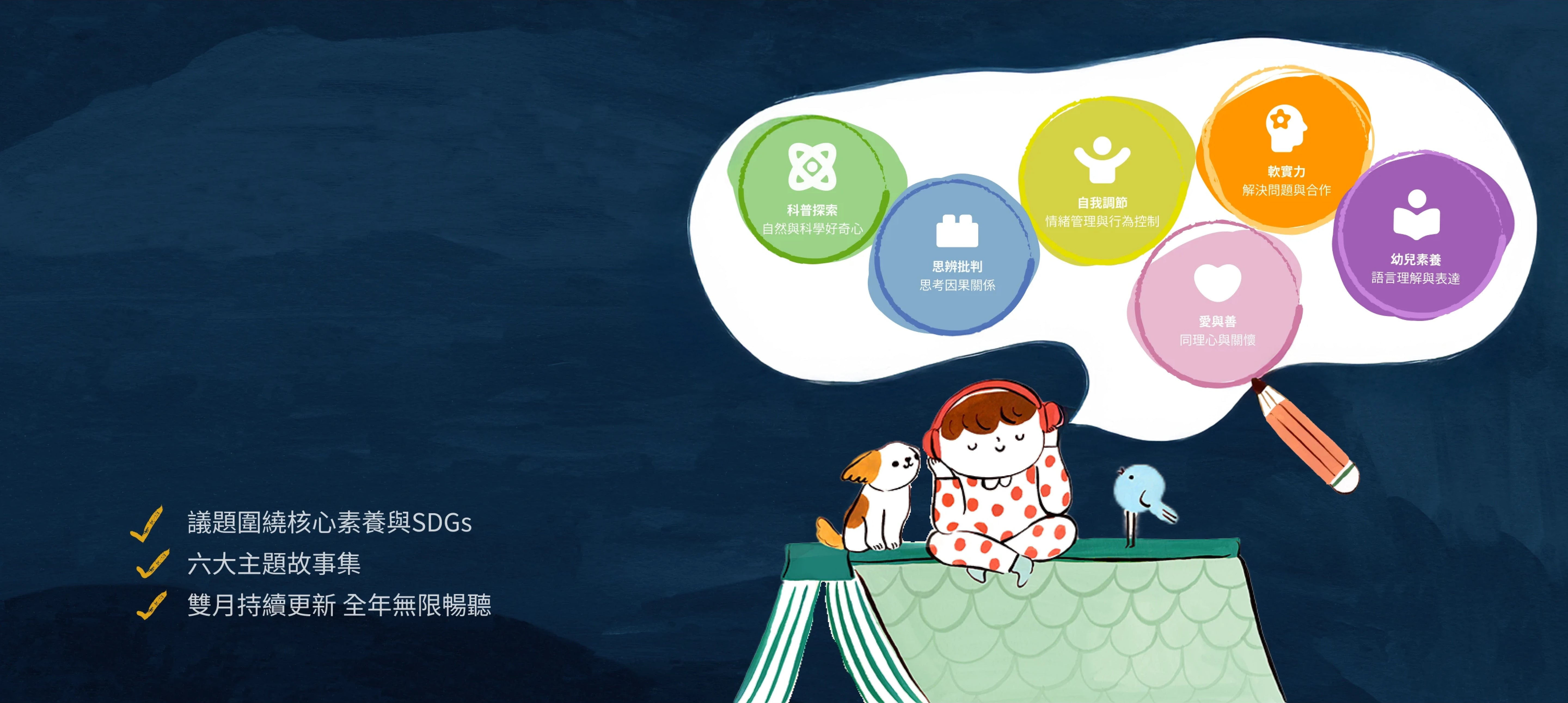 每則 Pixsee 原創故事都是孩子的成長旅程——引導他們培養素養、學會自我調節、展現愛與善,並在探索世界的過程中培養軟實力與思辨力。每一次傾聽,都是認識世界、更靠近「成為自己」的一步。